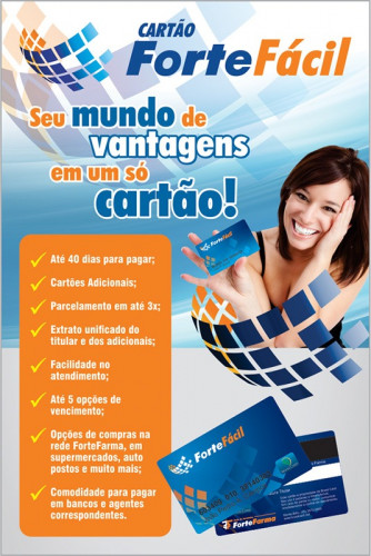O cartão da rede Forte Farma chegou para dá mais comodidade e facilidades na hora de fazer suas compras. Com ele você ganha descontos especiais e consegue dividir suas compras em até 10 vezes sem juros.