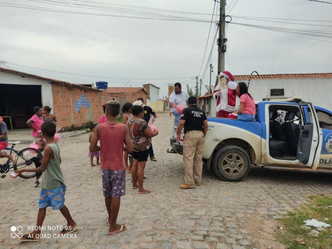A ação social aconteceu nesta quinta-feira (23) e tem como objetivo tentar amenizar as dificuldades e necessidades das pessoas mais carentes e vulneráveis no município. Os donativos foram entregues nos bairros 20 de Abril e Vila Maria, e também no distrito do Malhador (terra natal do delegado) e no povoado Rio do Peixe, ambos no município de Ipirá.