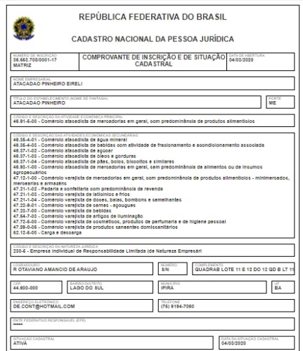 A empresa foi aberta no dia 04/03/2020 e tem capital social no valor de R$ 200 mil reais.