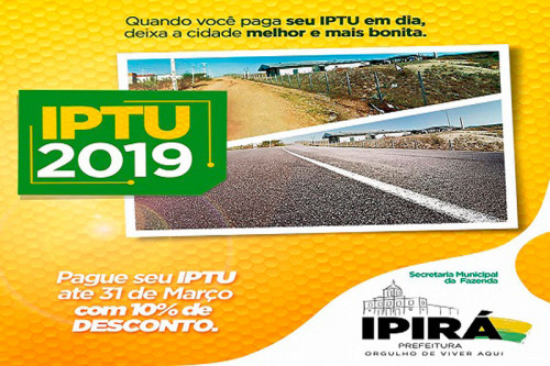 Prefeitura de Ipirá lança Campanha IPTU 2019 com desconto