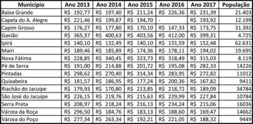 Nos dados extraídos dos 15 municípios que compõem o Território de identidade Bacia do Jacuípe, o município de Gavião com 4.725 habitantes foi o que teve a maior participação no financiamento dos gastos público em Saúde, entre os anos de 2013 a 2017.