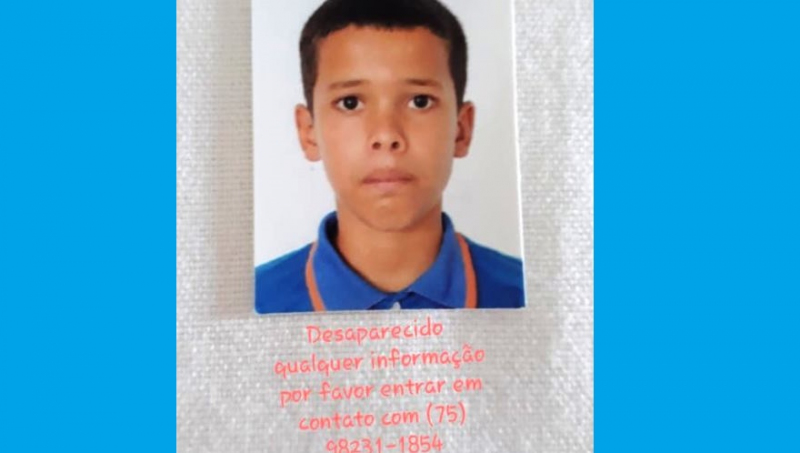 Familiares estão à procura de Victor Luan Santos da Silva, de 13 anos. Segundo informações, Victor saiu de casa por volta de 5h deste domingo (27) na Fazenda Engenho, próximo ao Povoado Santa Rita, zona rural de Ipirá e não retornou à residência.