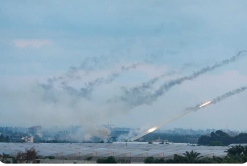 Segundo um alto comandante militar do Hamas, 5 mil foguetes foram lançados contra Israel. Sirenes de avisos de bombardeios foram acionadas em várias regiões de Israel, incluindo Jerusalém. Há registros de edifícios danificados em Tel Aviv e em outras cidades.