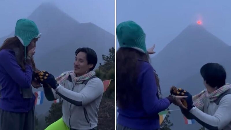 Pedido de casamento viraliza após vulcão entrar em erupção na hora do ‘sim’; assista