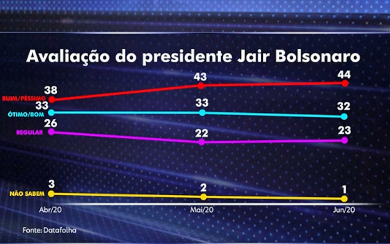 Bolsonaro é reprovado por 44% e aprovado por 32%, diz Datafolha