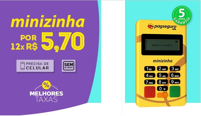 Adquira hoje mesmo uma de nossas maquininhas e participe da promoção. Que tal a Minizinha por Apenas 12x de R$ 5,70?