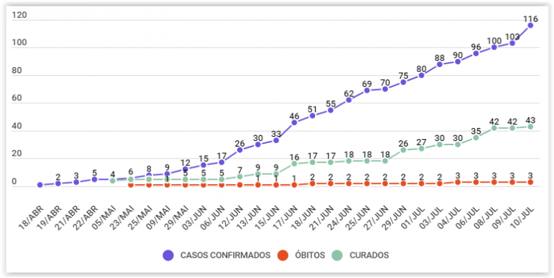 Veja gráfico com evolução dos casos de Covid-19 no município de Ipirá