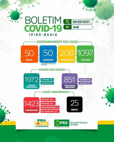 Mais um óbito por Covid-19 foi registrado em Ipirá, na Bacia do Jacuípe. Com isso, o número de mortes pela doença subiu para 25 no município.