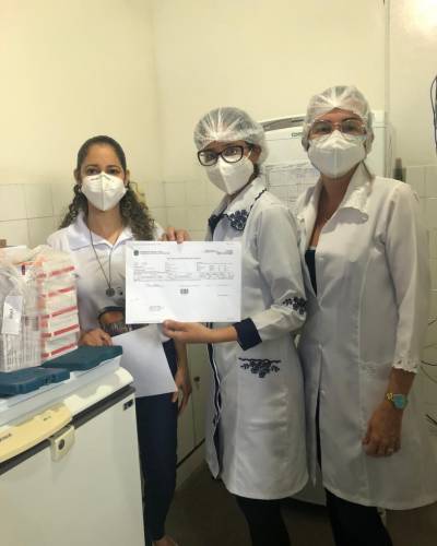 Uma equipe da Secretaria de Saúde recebeu na Unidade Básica de Saúde a remessa que é composta por 650 doses da AstraZeneca-Oxford e 980 doses da Coronavac do Instituto Butantan.