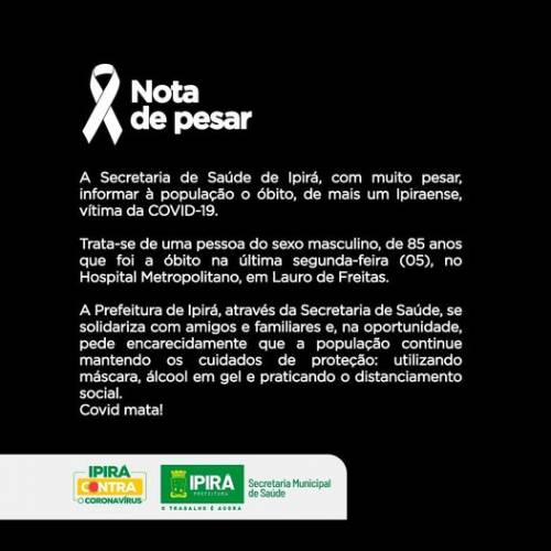 Segundo nota divulgada pela prefeitura nas redes sociais, trata-se de um homem, de 85 anos, que foi a óbito ontem (05), no hospital Metropolitano de Lauro de Freitas, região Metropolitana de Salvador.