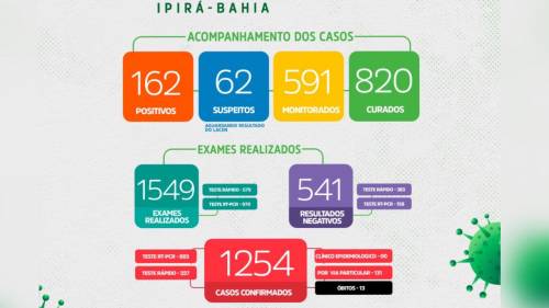 A Prefeitura de Ipirá divulgou, nesta terça-feira (09), 36 novos casos confirmados de Covid-19, passando de 1.312 para 1.348 pacientes…