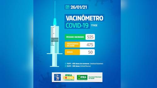 Secretaria de Saúde divulga número de vacinados contra a Covid-19 em Ipirá