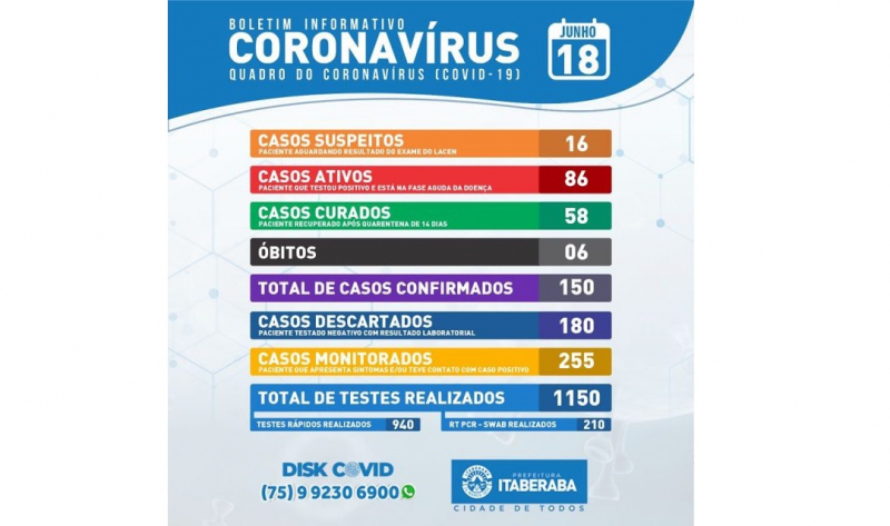A cidade de Itaberaba confirmou nesta quinta-feira (18) a 6ª morte por coronavírus. As informações foram divulgadas através do boletim…