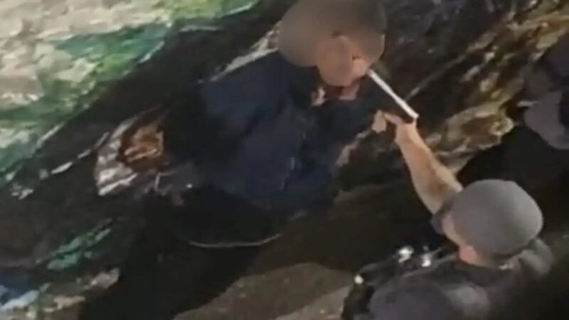 Um policial militar foi flagrado dando um tapa e apontando uma arma para o rosto de um homem rendido na…