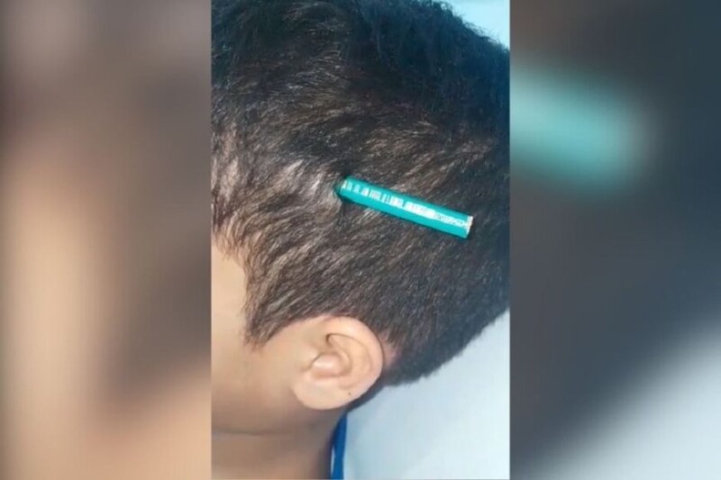 Menino de 9 anos fica com lápis cravado na cabeça após ser agredido na escola