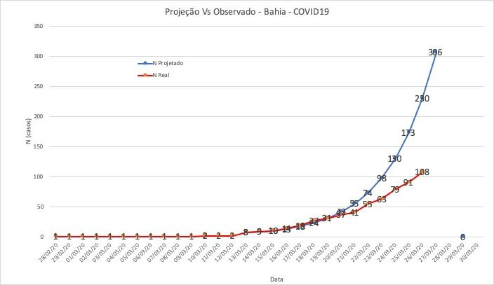 Gráfico aponta que casos de coronavírus na Bahia estão 46% abaixo do projetado