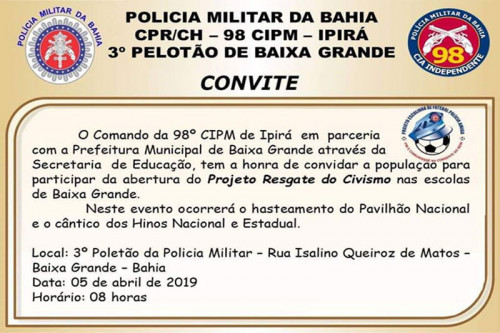 Polícia Militar e Prefeitura lançam nesta sexta-feira o Projeto Resgate do Civismo em Baixa Grande