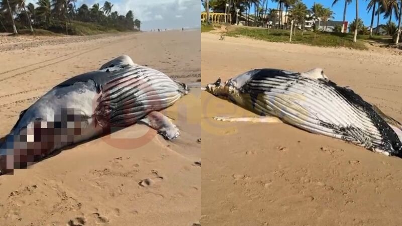 VÍDEO: Baleia é encontrada morta em praia de Salvador