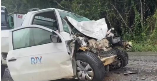 Acidente entre caminhão dos Correios e carro de passeio deixa um morto e quatro feridos na BR-101