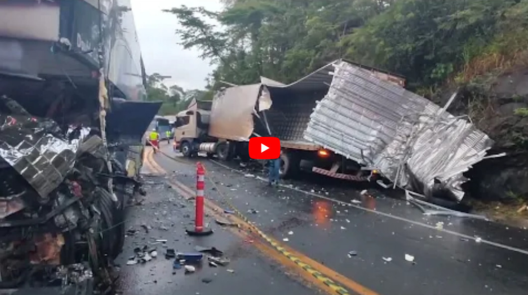 Uma pessoa morreu e 11 ficaram feridas em acidente envolvendo ônibus e caminhão na BR-116, em Muriaé, na Zona da…