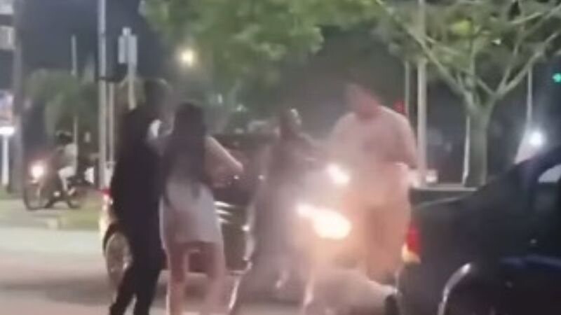Muitos socos e chutes: Vídeo mostra pancadaria durante briga de trânsito