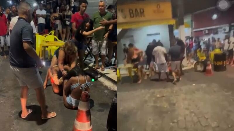 Confusão em praça pública! Mulheres ‘quebram o pau’ em point movimentado; Assista