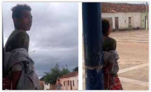 Moradores amarram assaltante em pilastra e depois o agrediram