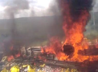 Caminhão de bebidas capota e pega fogo em curva na BR-030 em Brumado