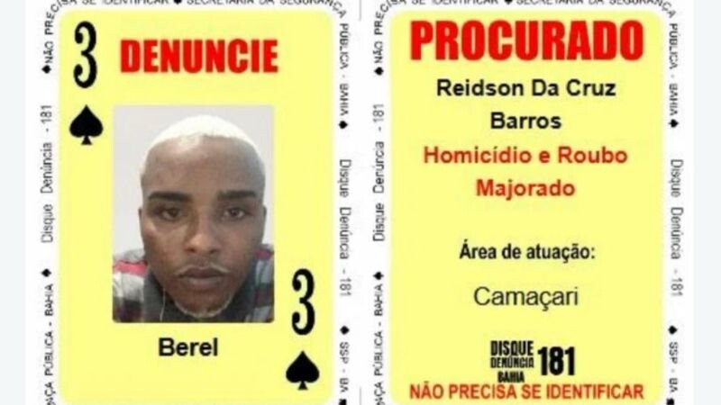Reidson da Cruz Barros, conhecido como “Berel”, que ocupava a carta Três de Espadas do Baralho do Crime da Secretaria da…