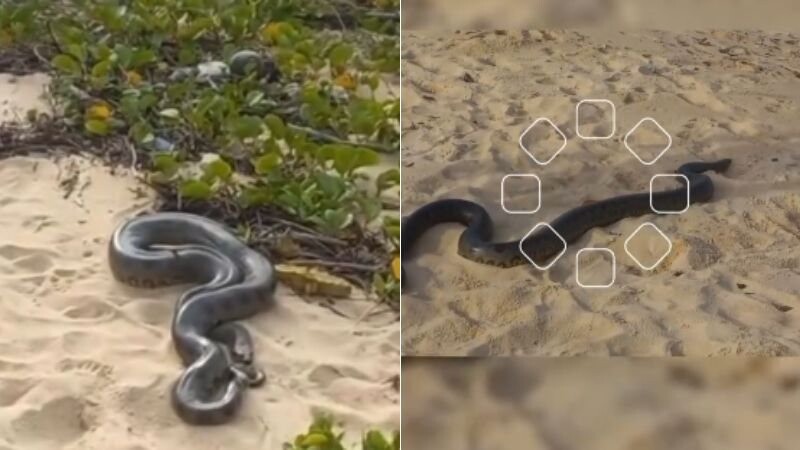 VÍDEO: Sucuri aparece na areia e assusta banhistas em praia do litoral baiano