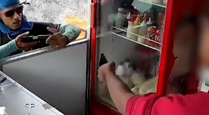 “Toma, toma”: Funcionário de food truck de Abrantes tenta resistir e assaltante aponta pistola; assista