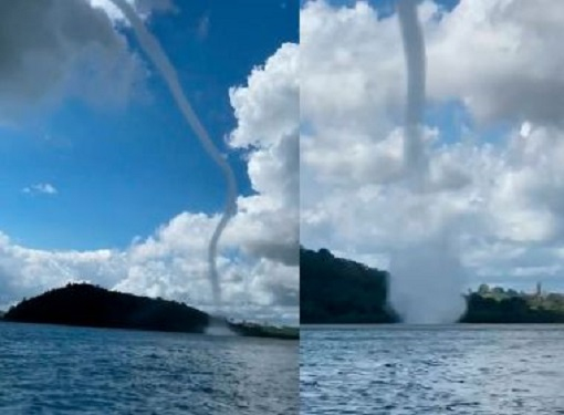 Tromba d’água no mar da Baía de Todos os Santos surpreende moradores de Candeias