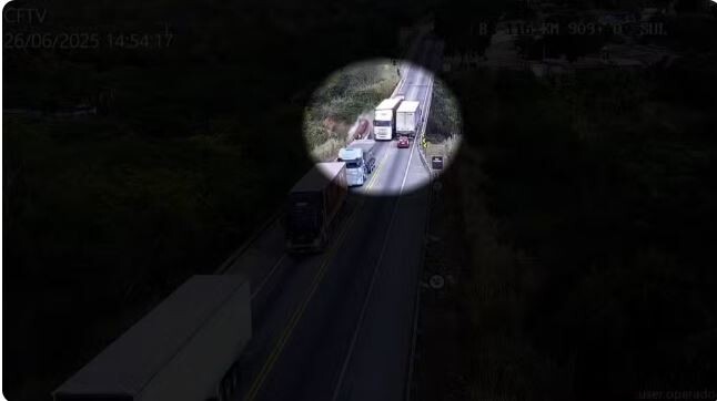 Duas pessoas ficaram feridas após uma colisão entre duas carretas e um carro em uma ponte na BR-116, de Cândido Sales,…