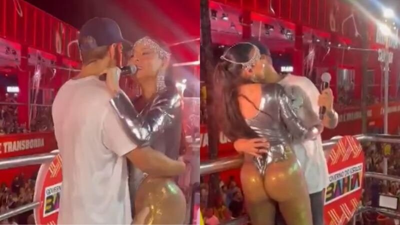 Alinne Rosa dá beijão em ator famoso em cima de trio elétrico no Carnaval de Salvador; assista