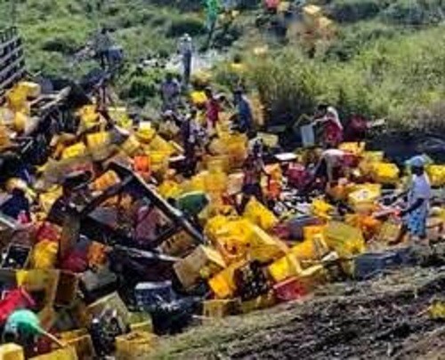Caminhão tomba e população saqueia carga de cerveja na BR-101