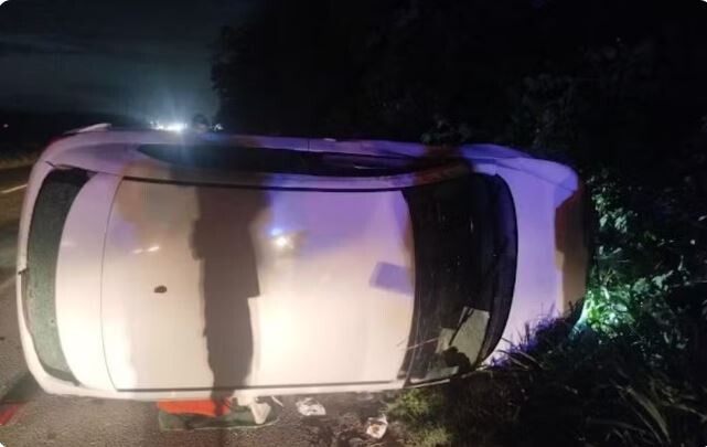 Dois homens são presos após capotar carro roubado durante tentativa de fuga na BR-324