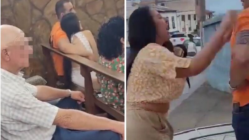Mulher flagra marido com amante e igreja vira palco de confusão; veja vídeo