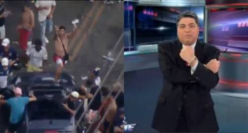 Câmera filmava a aglomeração quando o rapaz subiu no capô de um carro e mostrou o dedo do meio para…