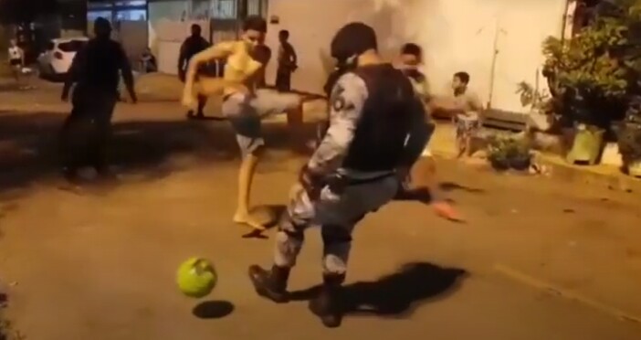 Policiais jogam bola com crianças durante ronda; assista vídeo