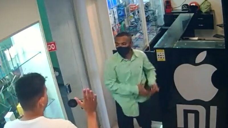 Vídeo: Vestindo traje social, homem assalta loja de celulares em Feira de Santana