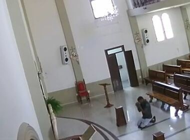 Homem entra em igreja, reza e furta urna de ofertório em Jequié