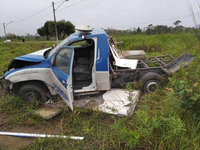 Viatura fica destruída após capotar em rodovia; um ficou ferido