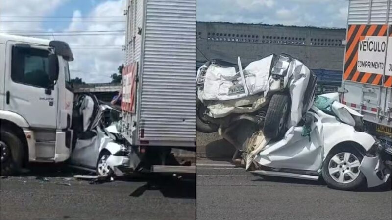 Um motorista conseguiu sobreviver após o carro em que dirigia ser prensado por duas carretas na BR-324, em Feira de Santana,…
