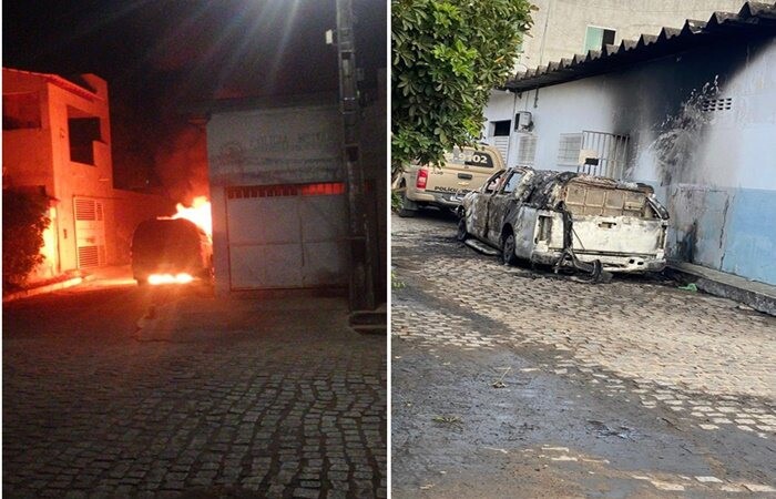 VÍDEO: Viatura da Polícia Militar é incendiada por homem no interior da Bahia