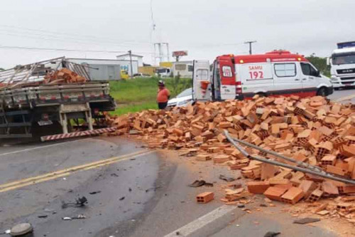Batida entre caminhão e carros de passeio deixa dois mortos em Governador Mangabeira