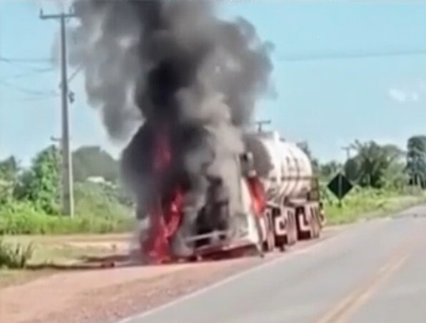 Caminhão carregado de combustível pega fogo em rodovia do oeste da Bahia