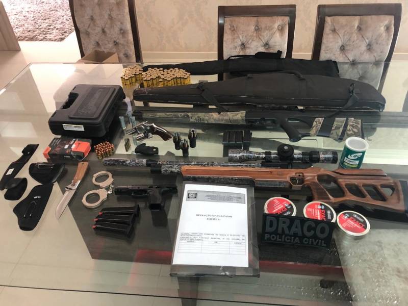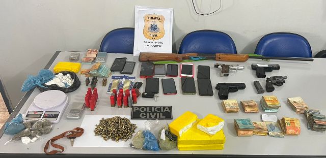 Duas submetralhadoras calibres 380 e 9 milímetros, oito quilos de maconha, divididos em tabletes, porções de cocaína e materiais usados…