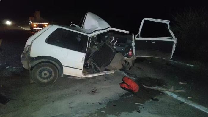 Um homem morreu e outros dois ficaram gravemente feridos após uma batida entre um carro e duas carretas na noite…