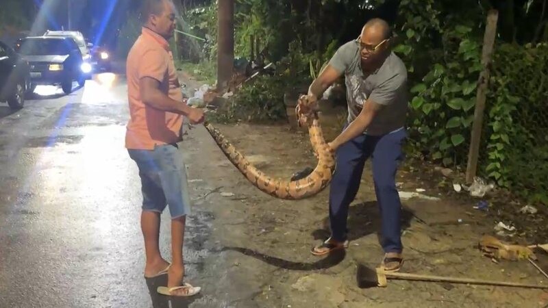 Homens resgatam jiboia em via de Periperi, em Salvador; imagem impressiona