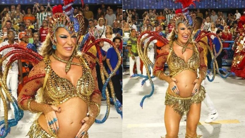 Grávida de cinco meses, Lore Improta desfila como musa da Viradouro na Sapucaí